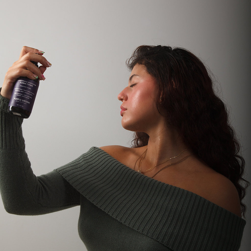 after cleansing your face, shake our floral toner well then spray onto a cotton round and wipe across all surfaces of your face. Alternately, this spray can also be used as a refreshing face mist.