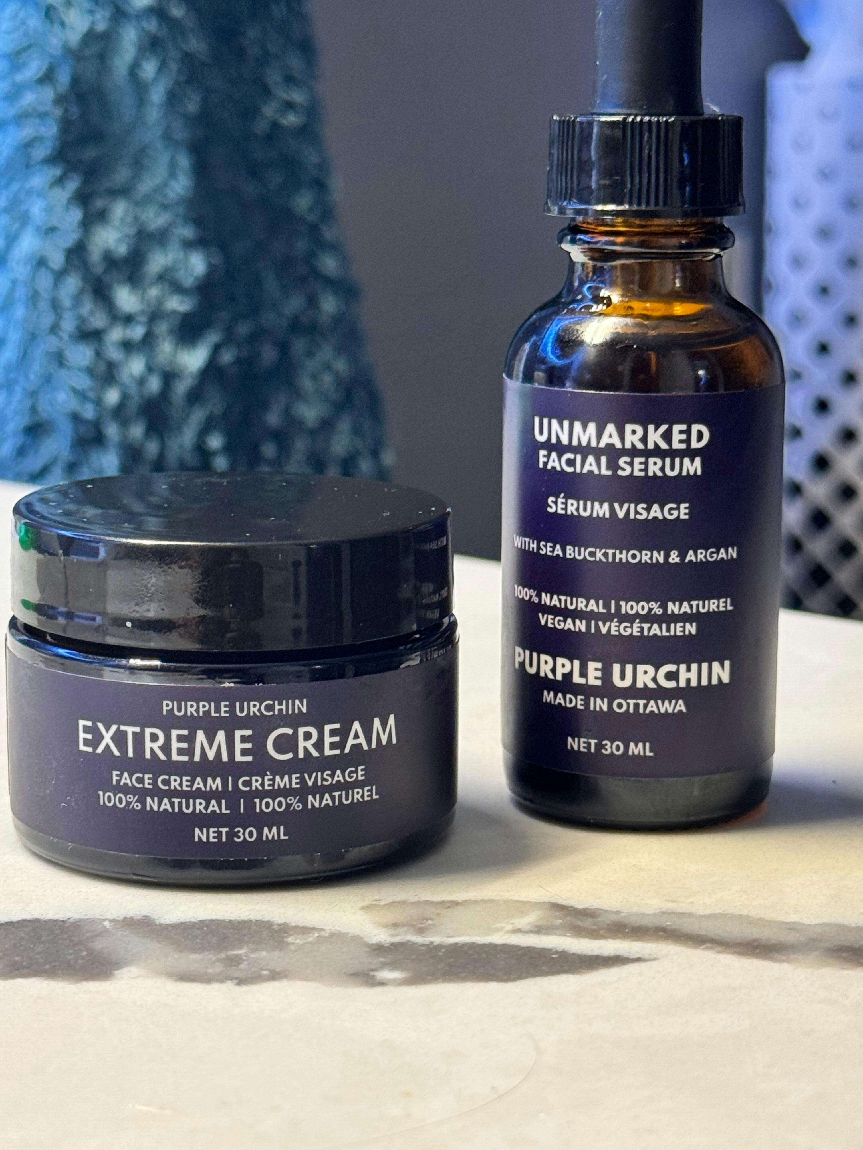 Our Extreme Cream facial moisturizer is one of our richest products. It's sure to leave your skin feeling hydrated and supple. Each ingredient was specifically chosen for its traditionally known benefits: smoothing wrinkles, reducing age spots, regenerating skin, blocking UV rays, and nourishing dry skin. Extreme Cream has a wonderful whipped texture, and is especially suited for dry and/or mature skin. Oil based and preservative free, our waterless formula is much more concentrated than regular face lotions. A little goes a long way!